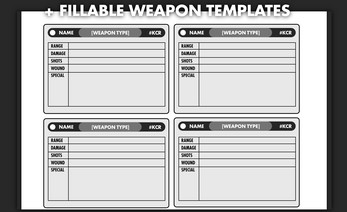 Also included are easily printable playing-card sized weapon cards AND the tools to design your own weapon cards! As of V2, these are also provided as individual PDF pages and as separate PNGs to enable printing.